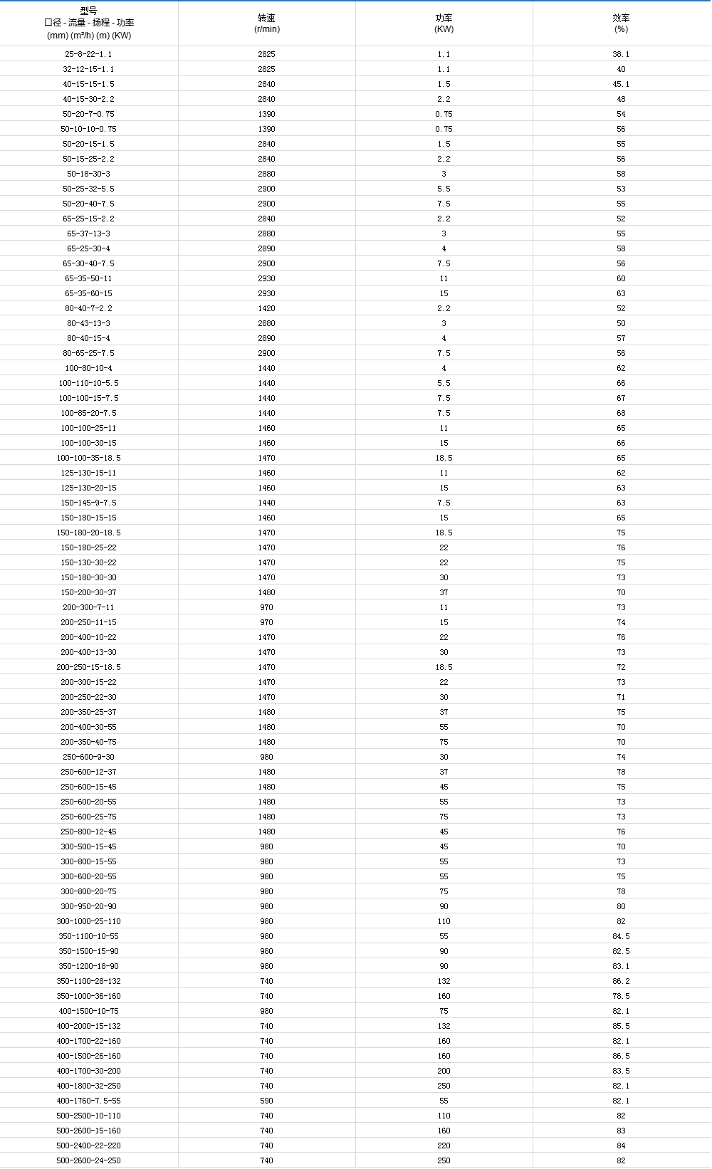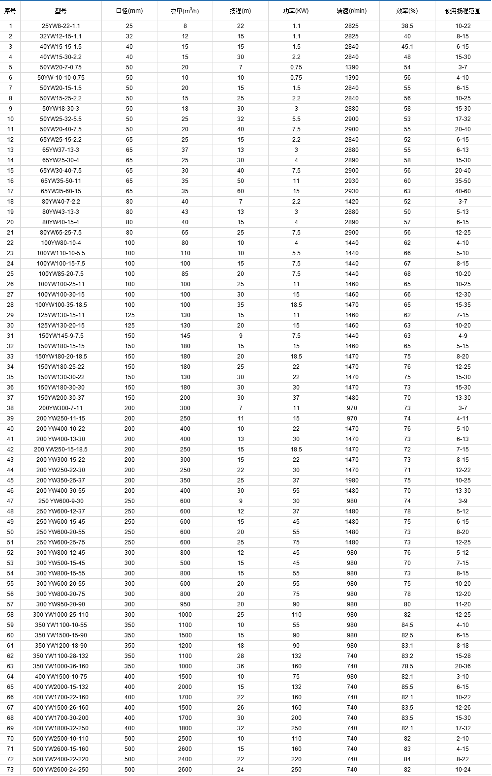 YW、YW、LW、GW型無堵塞排污泵性能參數(shù)